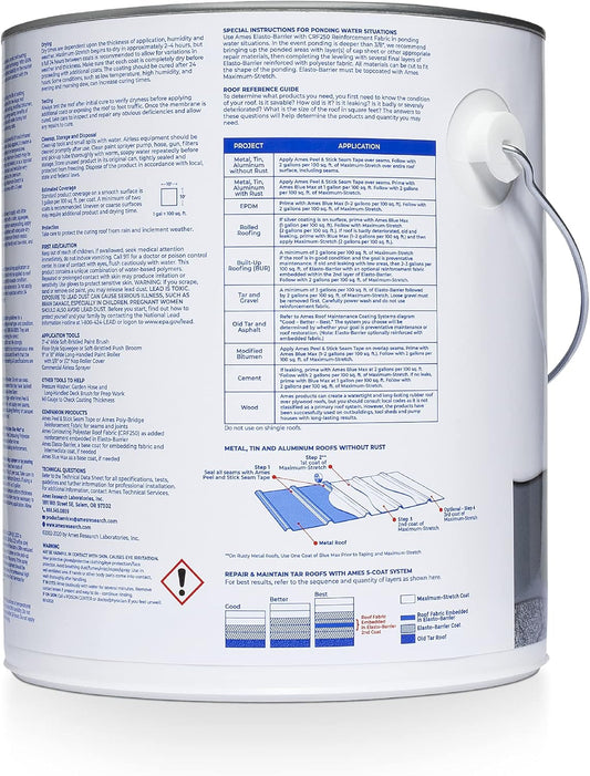Ames Blue Max Waterproof Sealant - 1 Gallon White Liquid Rubber for Indoor and Outdoor Use