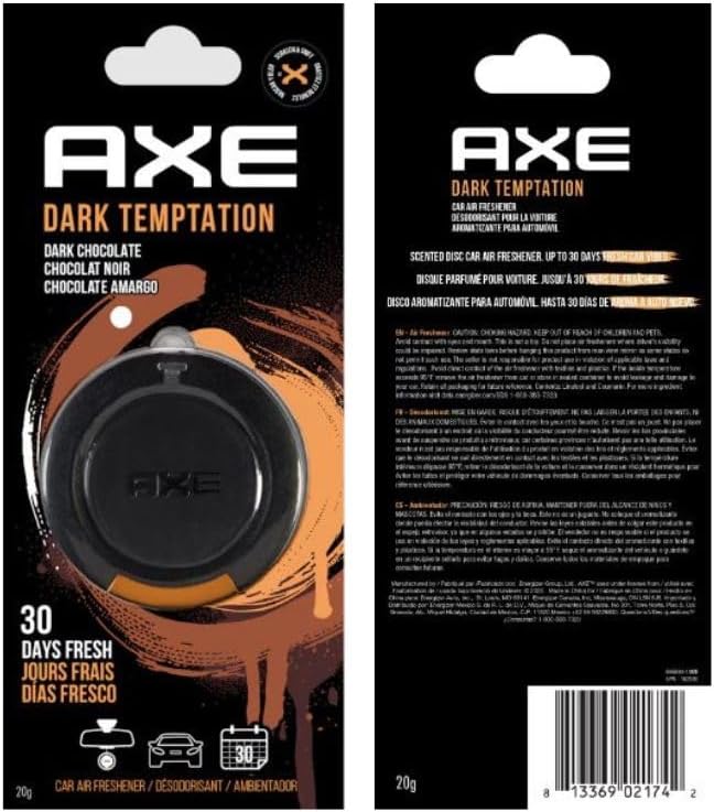 Transform your driving experience with the AXE Dark Temptation Car Air Freshener. Infused with a rich dark chocolate scent, this air freshener eliminates stubborn odors and keeps your car smelling fresh for longer drives.