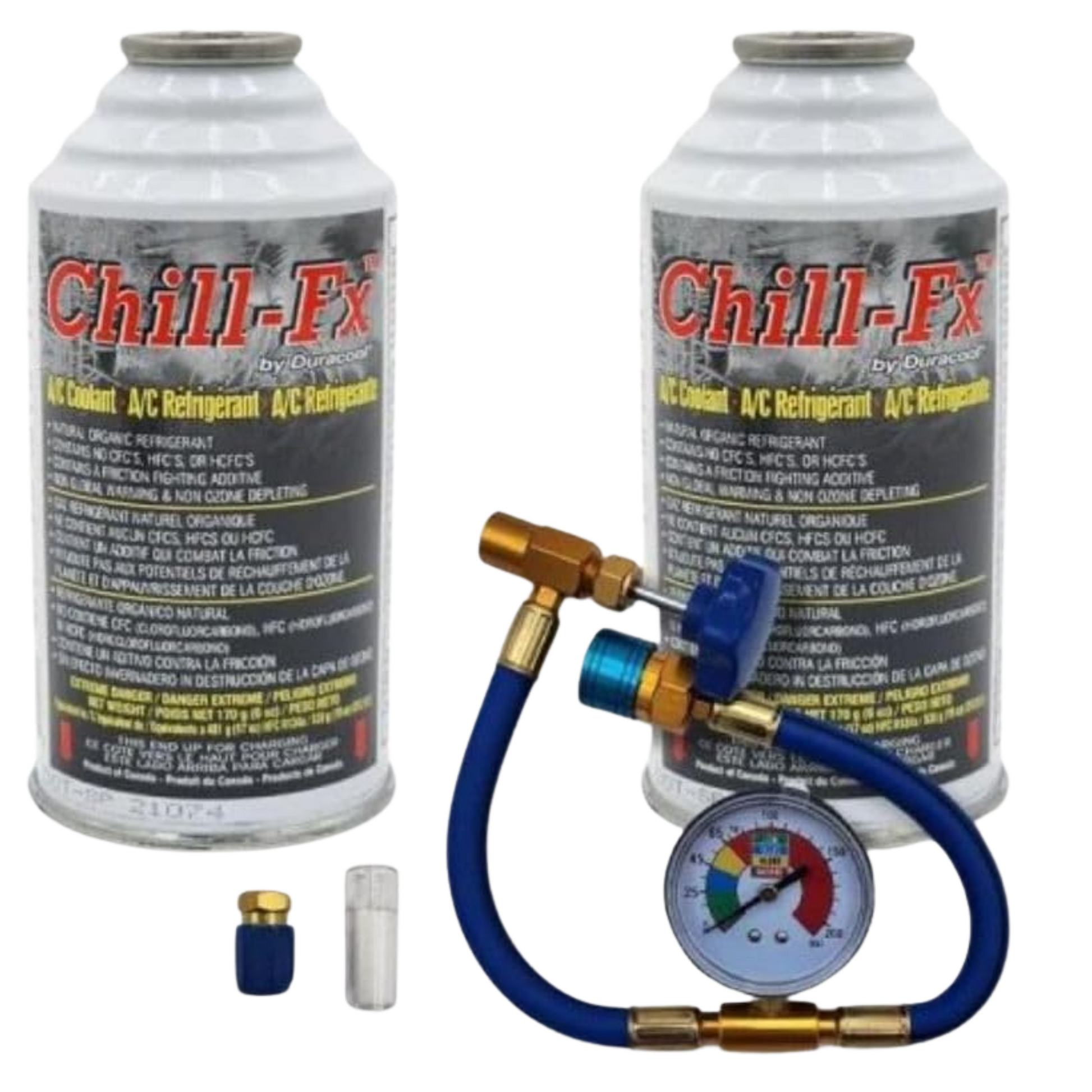 Chill-Fx AC Recharge Kit R134a and R12 Replacement AC Refrigerant A/C Refrigerator Includes Charging Hose with Gauge Oil Check Thermometer and Low Side Adapter