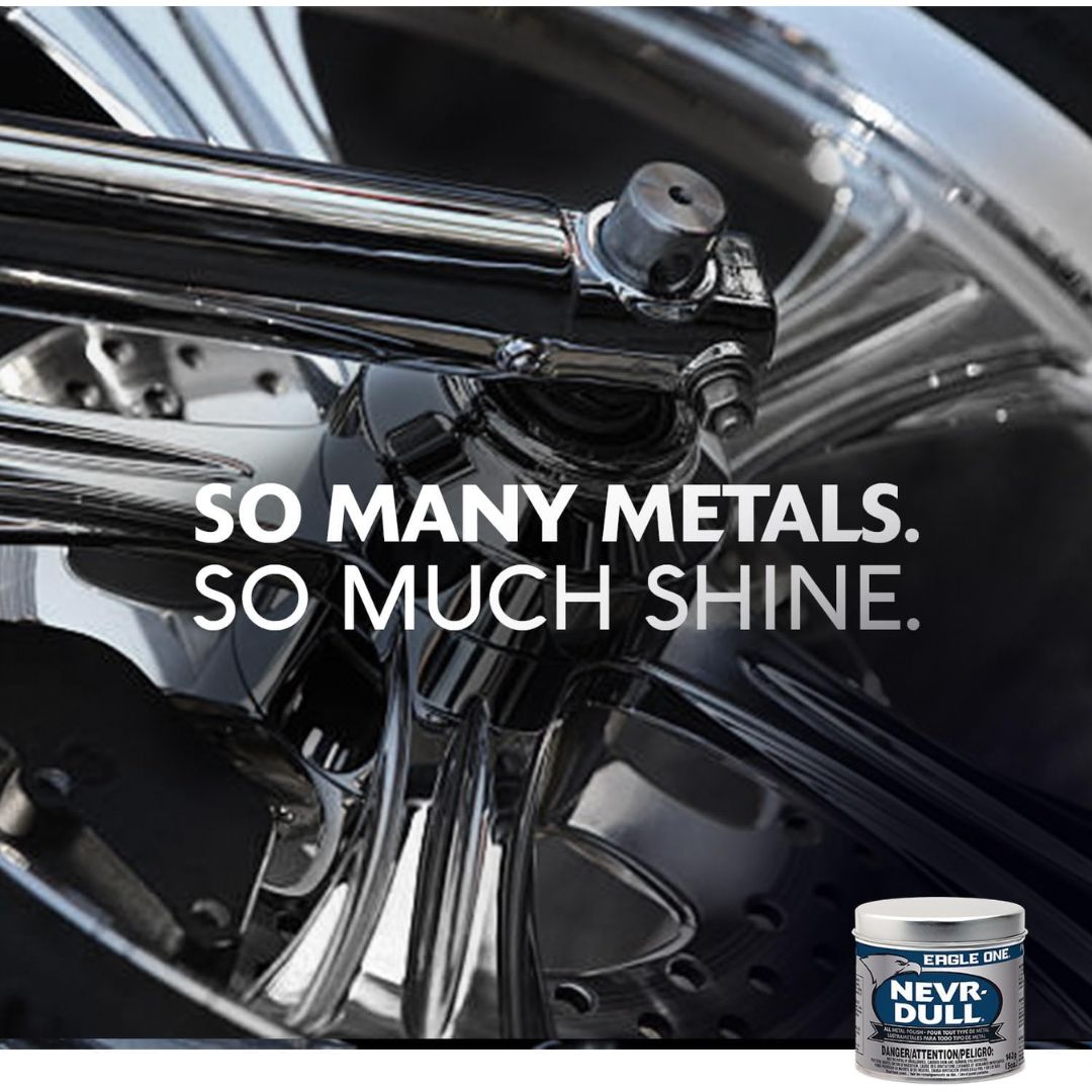 Achieve a brilliant shine on any metal surface with Eagle One Nevr-Dull Metal Polish. This easy-to-use, non-abrasive wadding polish removes rust, tar, and corrosion from steel, chrome, and aluminum without scratching or leaving residue. Perfect for cars, motorcycles, RVs, and boats, Nevr-Dull also works on household items like silverware, tools, and sinks.