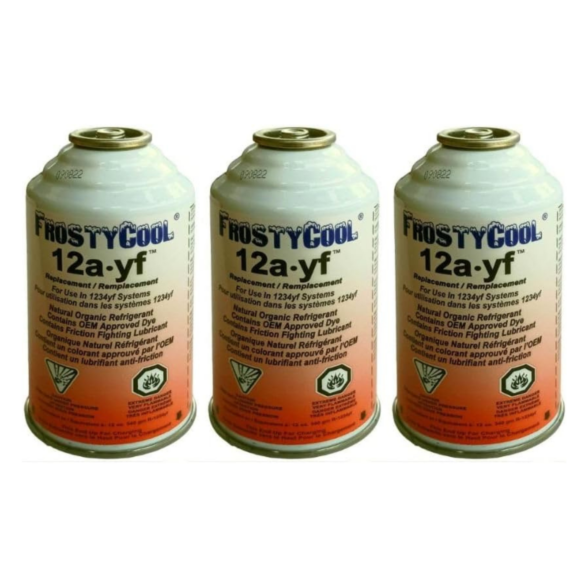 FrostyCool 12ayf AC Replacement Refrigerant for use in 1234 to Systems, Natural Organic Refrigerant .Contains OEM Approved Dye, 6oz. (3 Can)