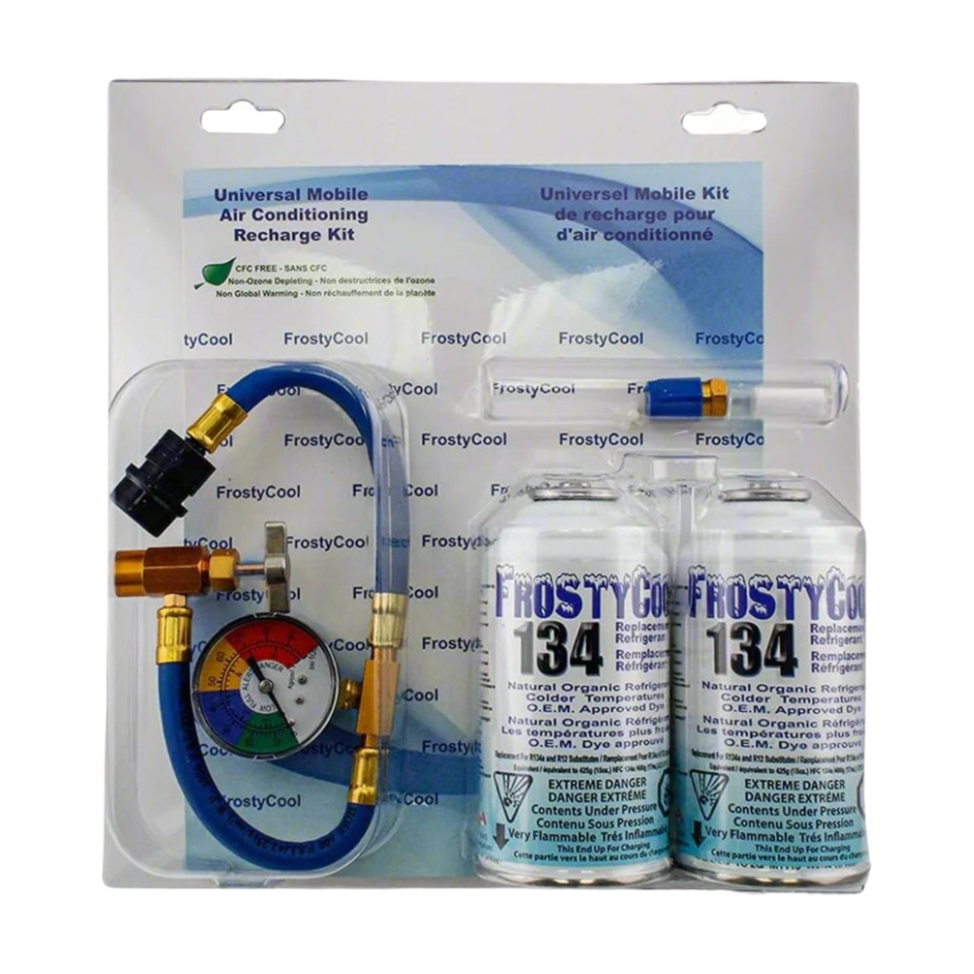 Description: FrostyCool 134 Replacement Refrigerant is an environmentally safe hydrocarbon blend that efficiently replaces R134a and CFC-R12 in various applications. This kit allows for safe and effective recharging of your A/C system, ensuring optimal performance and comfort. With one can typically sufficient for most automotive A/C systems, you can enjoy consistent cooling with ease.