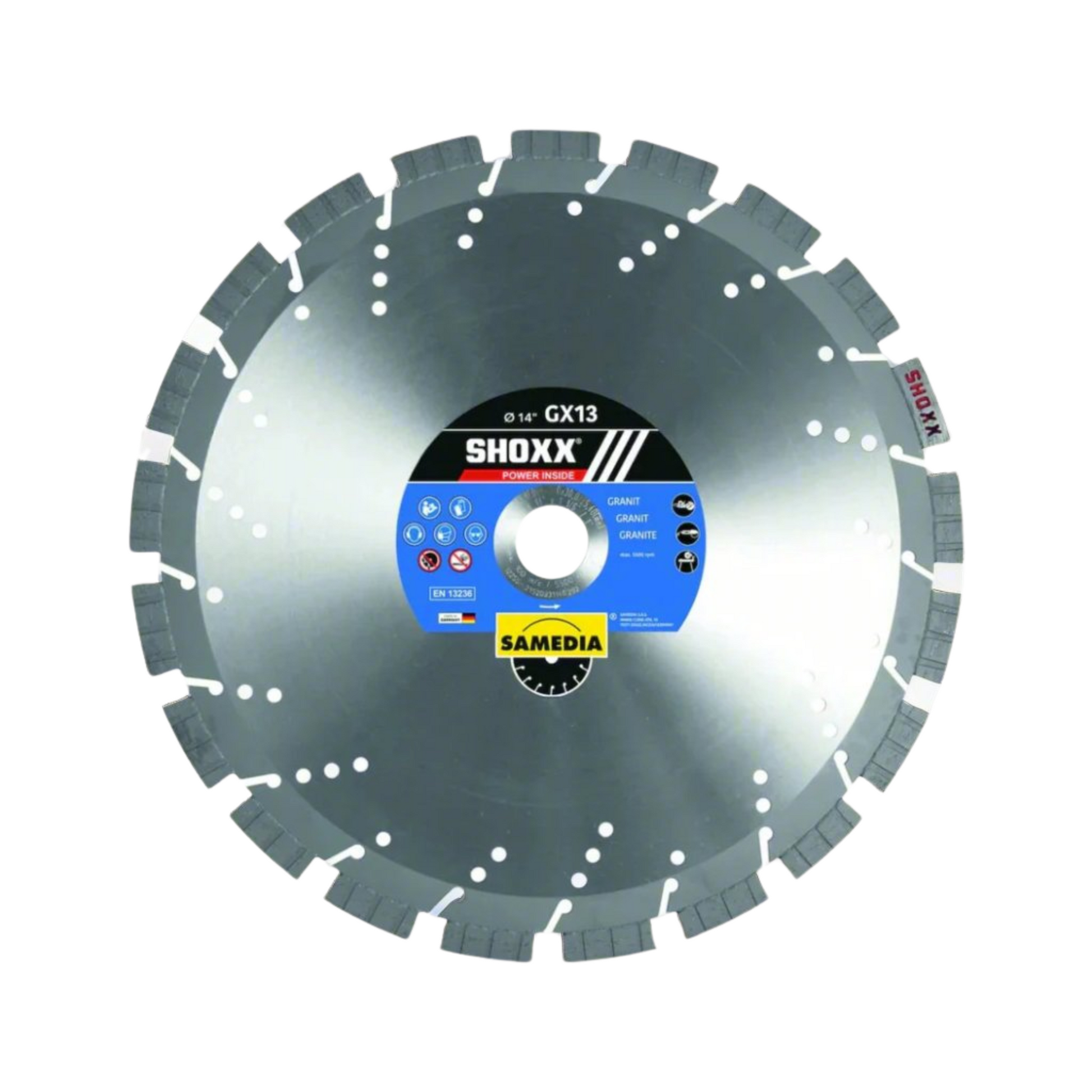 Introducing the SHOXX® GX13 Diamond Blade by SAMEDIA – the ideal choice for fast, precise granite cuts. Designed with high-quality SHOXX technology, this blade offers exceptional durability and smooth cutting, making granite cutting easier than ever.